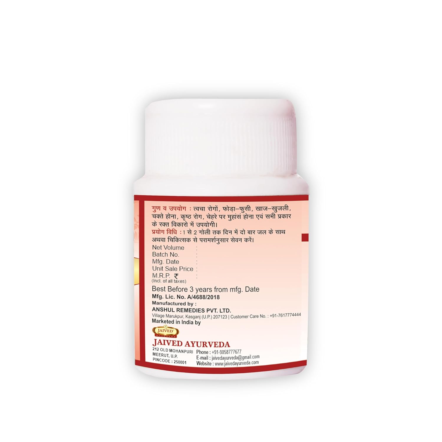 • Enriched with Manishta, Pancha Nimba, Turmeric, Bakuchi, Mulethi, and Triphala.