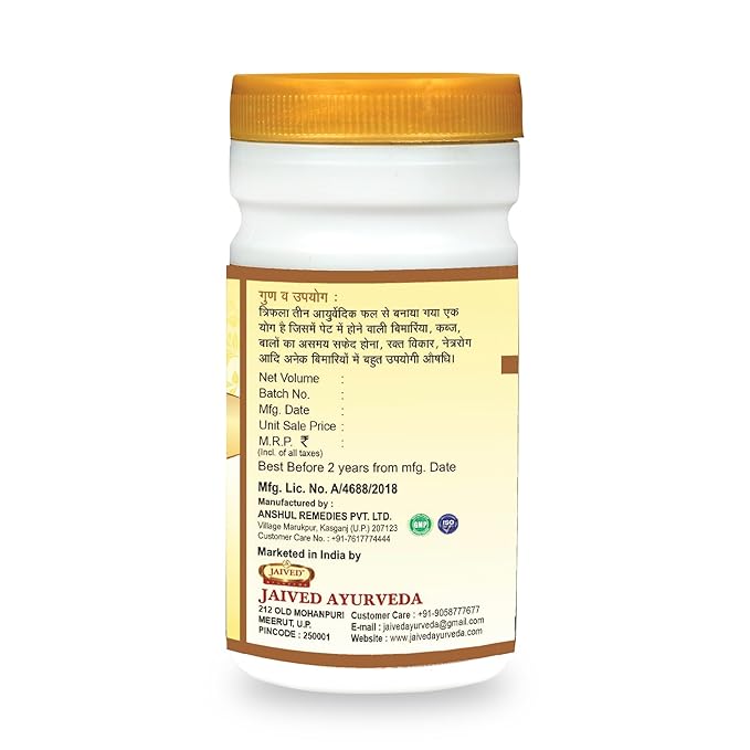 Jaived Ayurveda Triphla Churna | Supports Digestion, Detoxifies & Boosts Immunity - 100 Gms