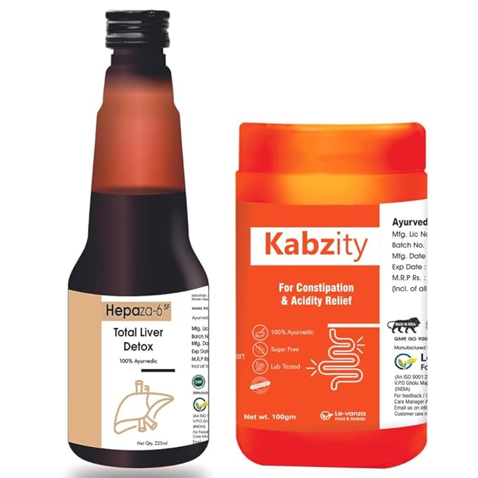 Levanza Food & Herbals Hepaza Liver Detox and constipation medicine combo | fatty liver syrup | constipation powder