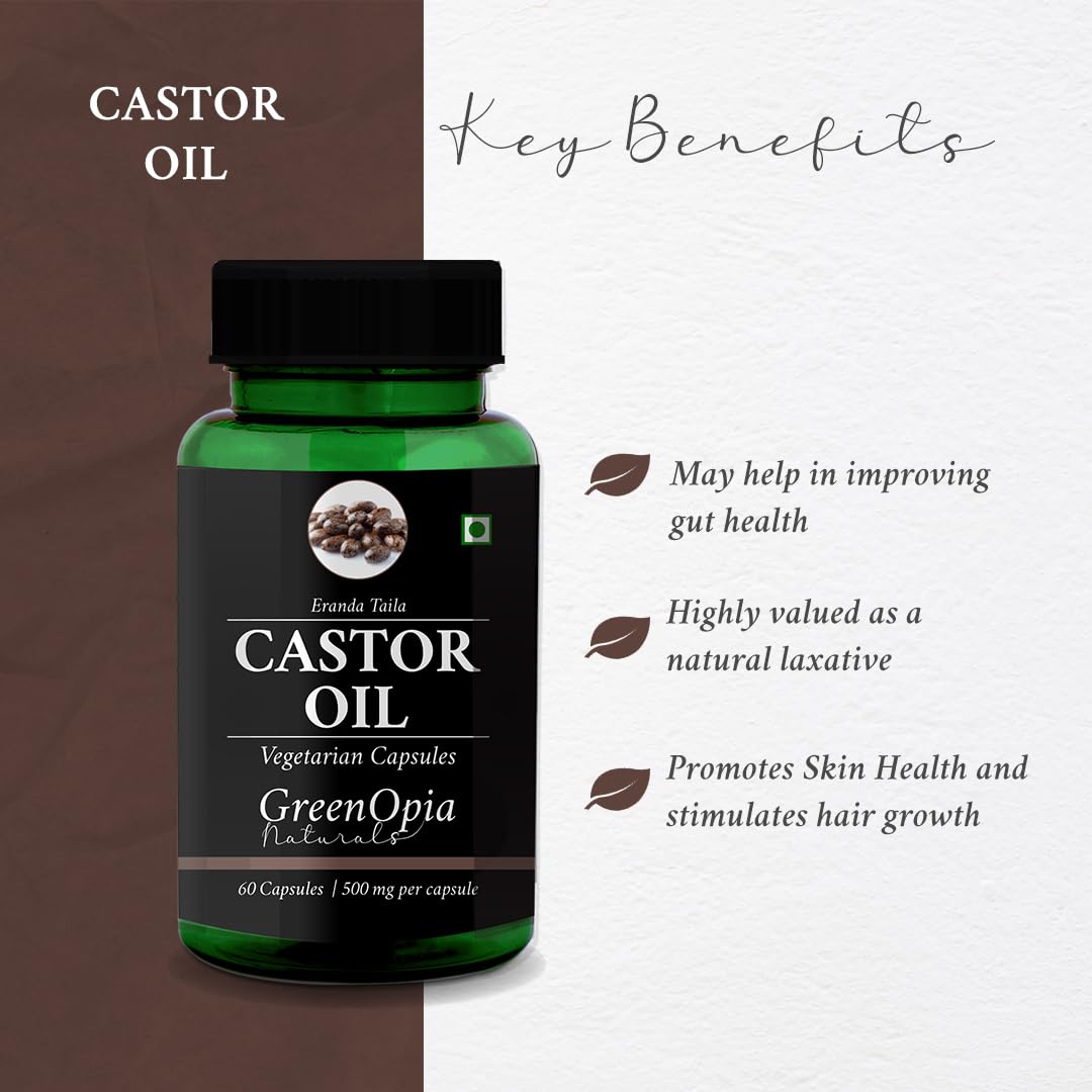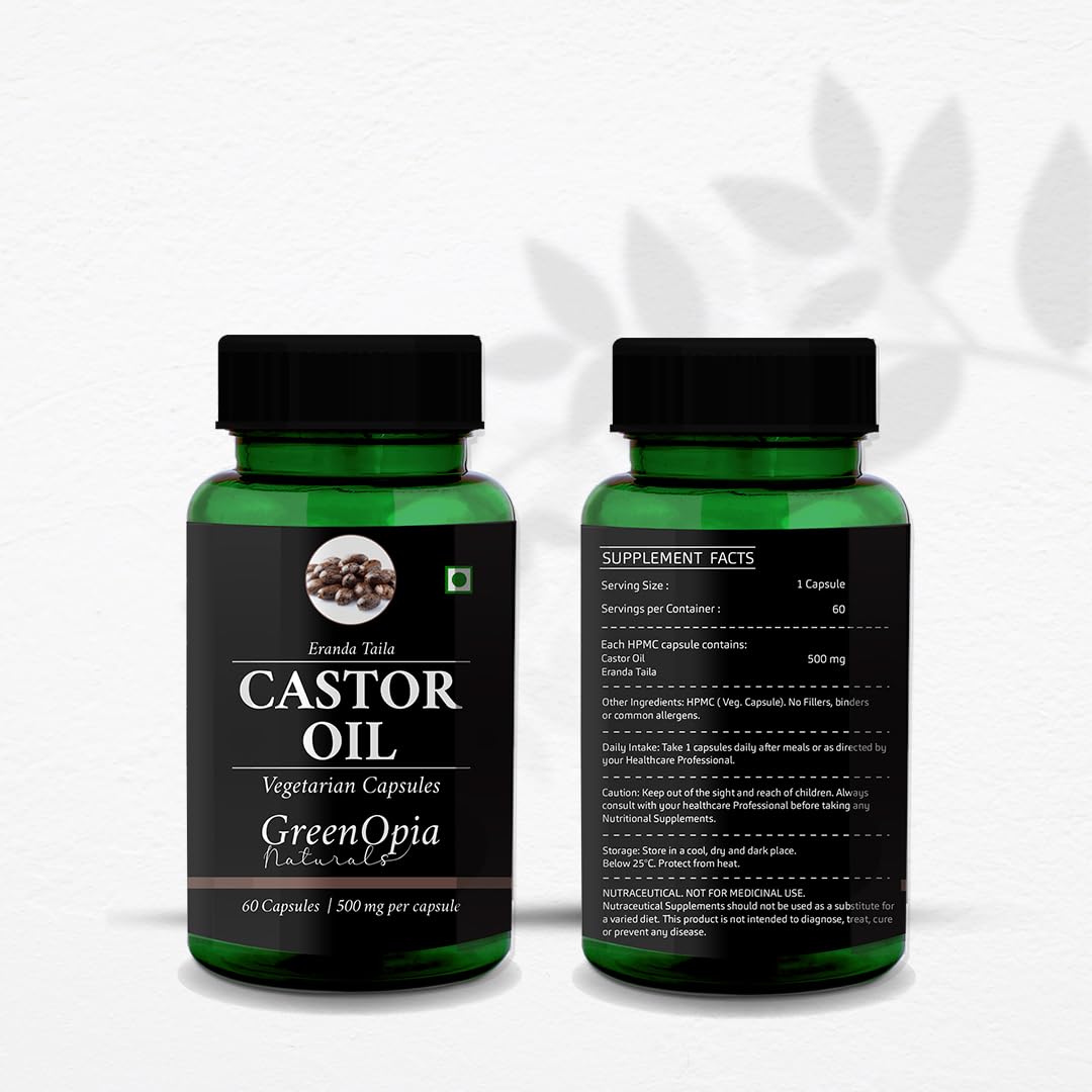 • Castor Oil vegan capsules improve the appearance of hair and skin, helps in relieving constipation