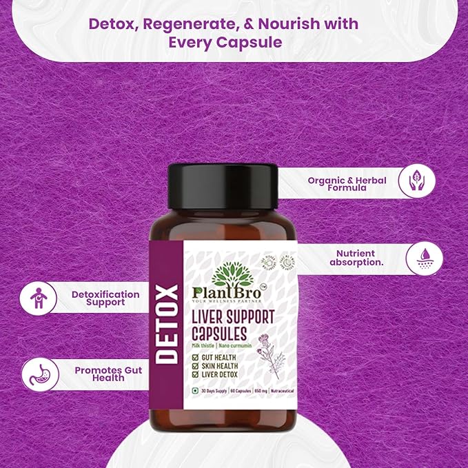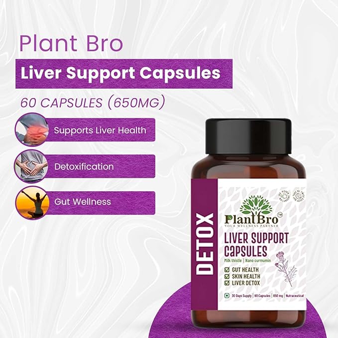 Plant Bro Liver Support Capsules - 60 Capsules | 650 Mg | Helps in Supporting Gut Health, Skin Health & Body Detoxing