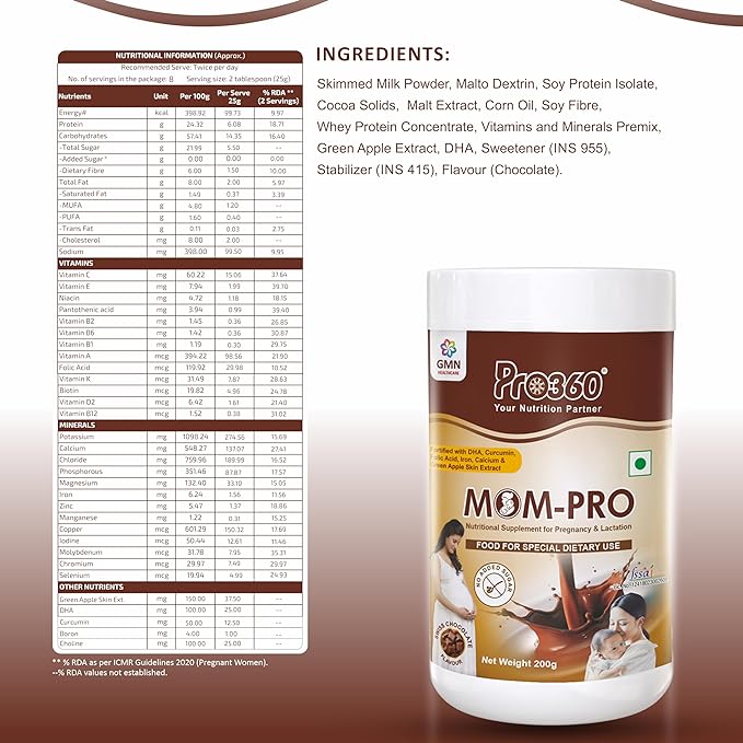 • Maternal nutrition supplement for pregnant women - pro360 mom-pro's no added sugar formula helps in manage the blood sugar level of the pregnant women and minimize the risk of gestational diabetes during pregnancy.
