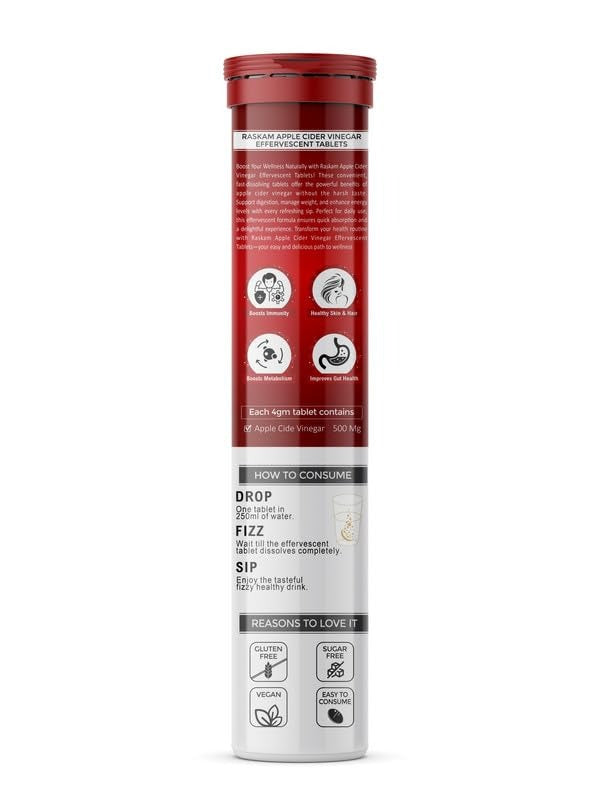 - For Better Taste & Health : Apple Cider Vinegar(ACV) Effervescent Tablets with vitamin c also helps in next-level health of your hair and skin. Taking a daily dose of apple cider vinegar tablets will nourish your beauty and health to better standards.