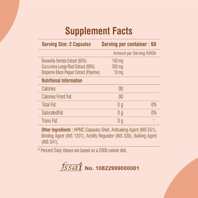 • High Potency Formula: Each capsule contains 510 mg of clinically studied ingredients, including Curcumin 95% and Boswellia 85%, for maximum effectiveness.