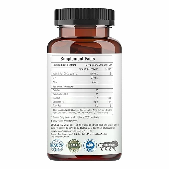 • Our omega-3 supplement brings with it the strengths of fish oil and vitamins. These omega-3 antioxidant capsules contain EPA of not less than 30% and DHA of not less than 20% along with vitamins to form a unified health solution. We recommend taking 1-2 soft gels per day immediately before food.