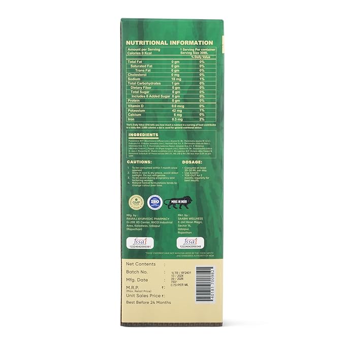 • 100% AYURVEDIC: This Juice Acts As A Safe & Convenient Way To Detox Body. This Ayurvedic Juice Is Made In GMP-Approved Facilities. It Is Also Manufactured Without Any Added Sugar or Artificial Colours or Flavors