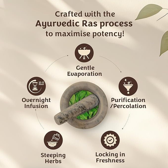 • AYURVEDIC RAS PROCESS – Uses an authentic Ayurvedic preparation method to preserve the potency of the herbs.