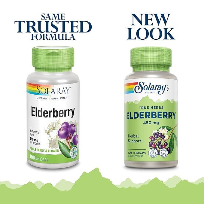 Solaray Elderberry Berries and Flowers Capsules 450mg - 100 Caps