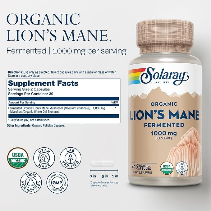 Solaray Lion's Mane Mushroom (500 Mg) - 60 Veg Caps