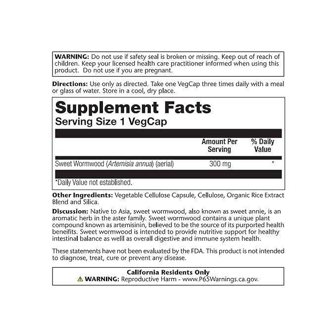 Solaray Sweet Wormwood 300 mg - 100 Caps