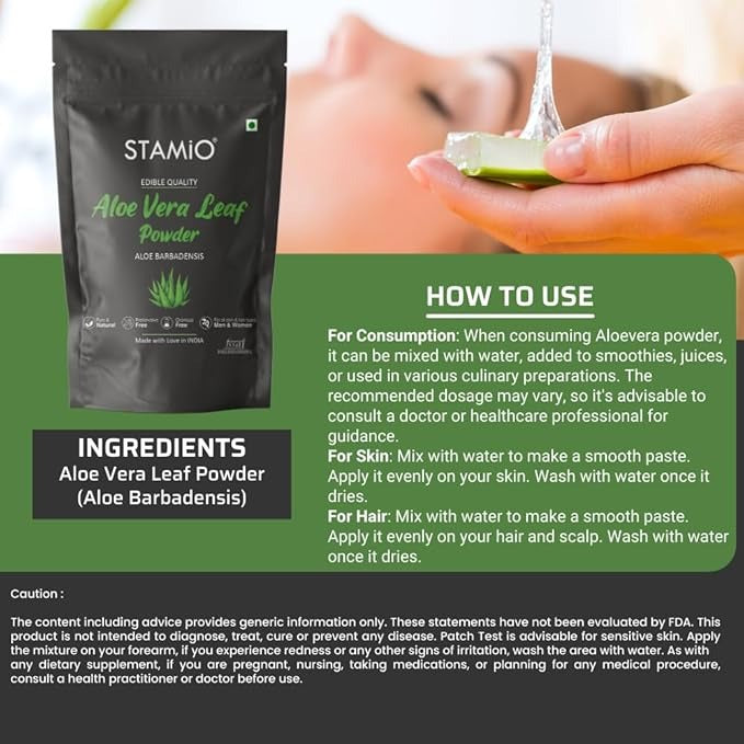 • Natural Aloe Vera Powder for Hair Pack, Healthy Scalp, Face, Skin Care, Face Mask | Target Audience: Men & Women | Country of Origin: India