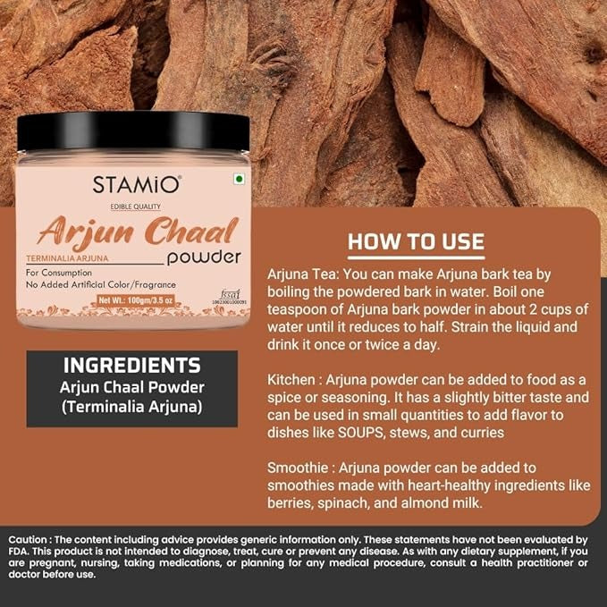 - Package Contents: 100gm Pure & Natural Arjun Ki Chaal/Bark Ka Powder - Edible Quality