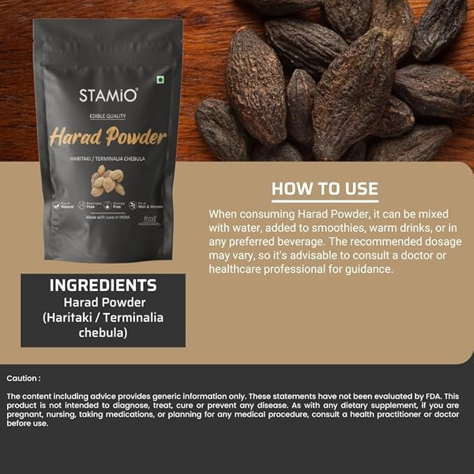 • When consuming Harad Powder, it can be mixed with water, added to smoothies, warm drinks, or in any preferred beverage. The recommended dosage may vary, so it's advisable to consult a doctor or healthcare professional for guidance.