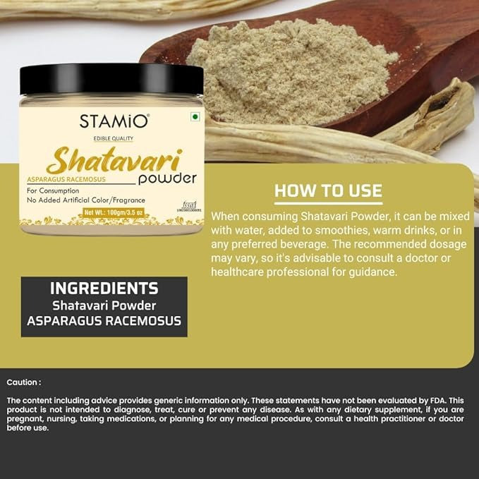 - When consuming Shatavari Powder, it can be mixed with water, added to smoothies, warm drinks, or in any preferred beverage. The recommended dosage may vary, so it's advisable to consult a doctor or healthcare professional for guidance.