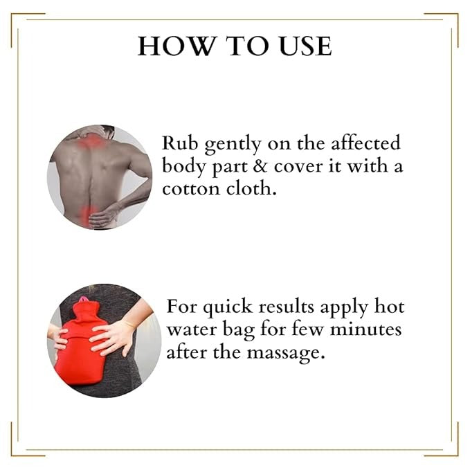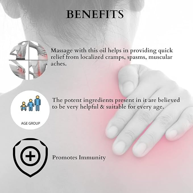 - The potent ingredients present in it are believed to be very helpful & suitable for every age.~ Applying this oil helps in providing relief .~ Easy, mess free application and travel friendly as well.~ Suitable for all age groups.
