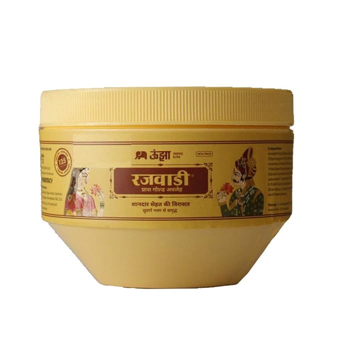 • Rajawadi Prash Gold is the marvelous chyavanprash enriched with suvarna bhasma, best quality Amla and various other precious ingredients it is processed in pure ghee.