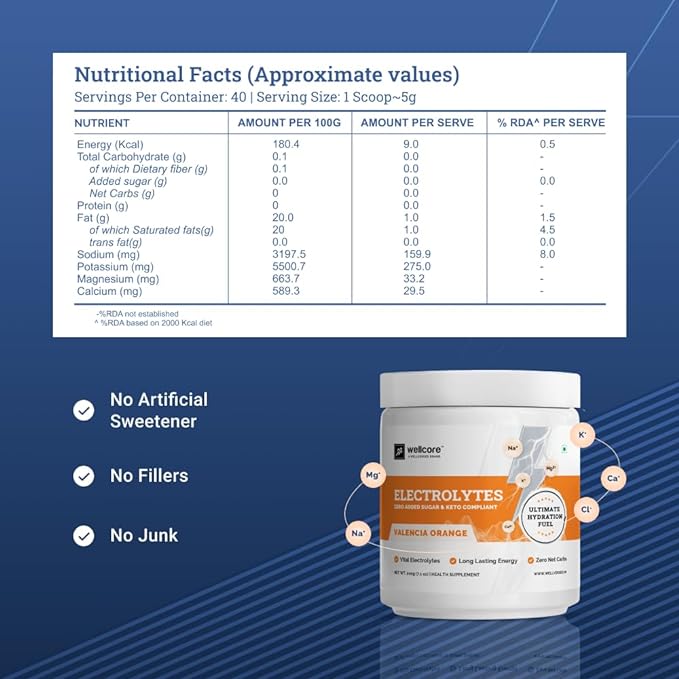 • Electrolytes refuelling with amazing taste: when it comes to both nutrition and taste, wellcore electrolytes will not disappoint you one bit. This orange flavored tangy energy drink powder will cater to your hydration as well as recovery needs.