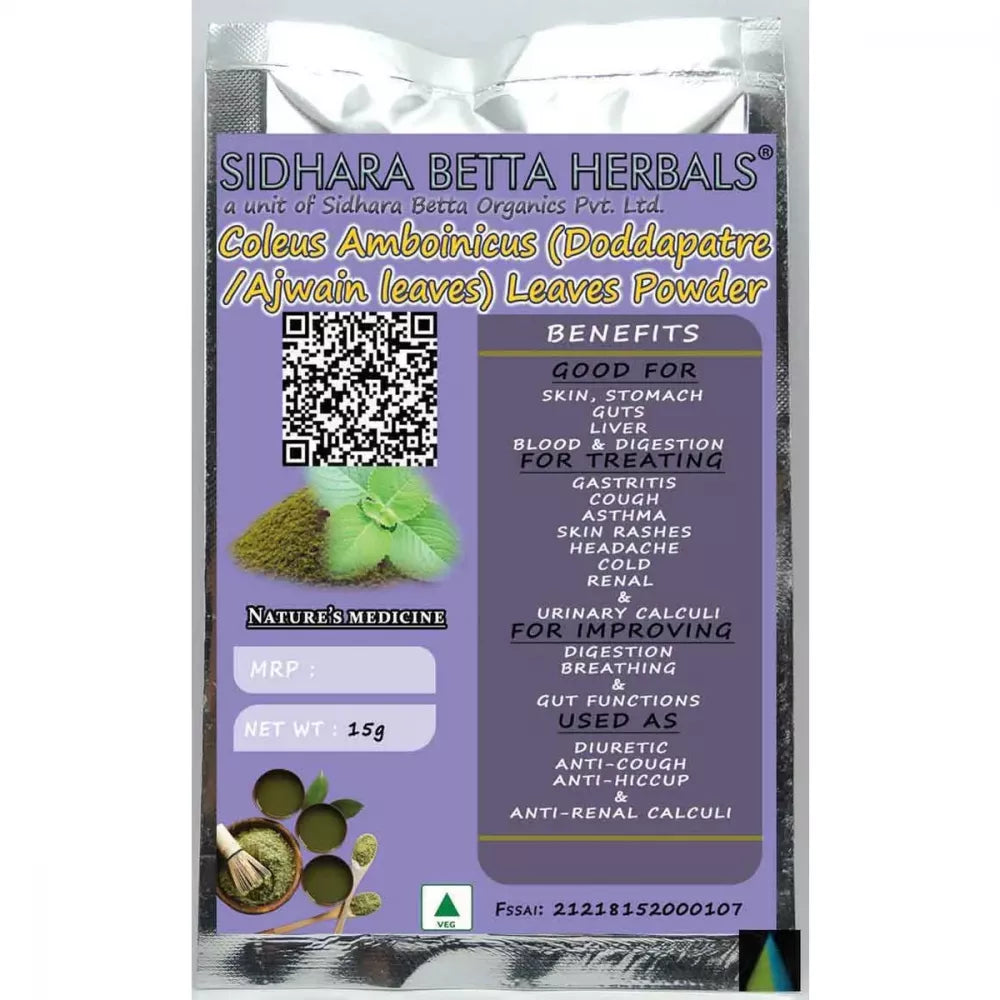 Sidhara Betta Herbals Coleus Amboinicus (Doddapatre /Ajwain Leaves)- 15 gms