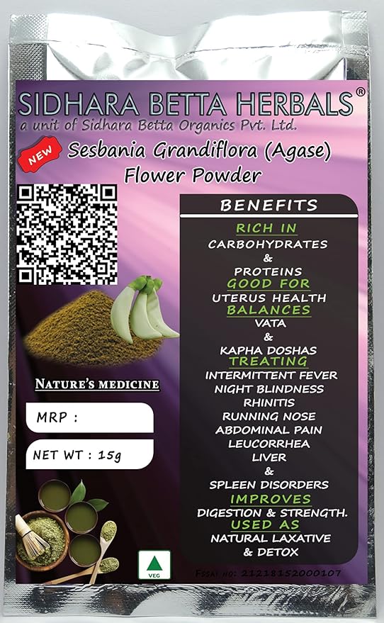 Sidhara Betta Herbals Sesbania Grandiflora (Agase) Flower Powder | Sesbania Grandiflora Flower Powder - 15 gms