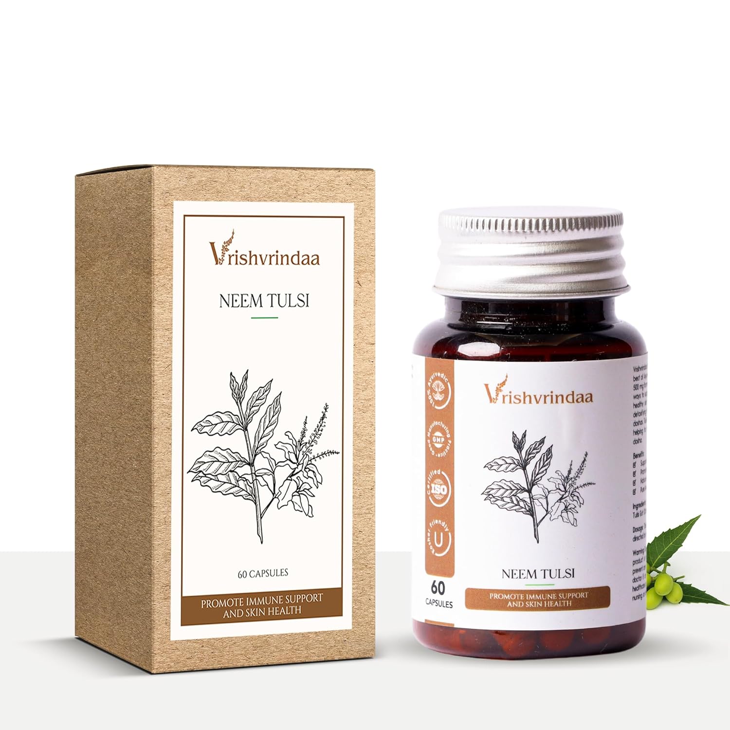 VrishVrindaa Neem & Tulsi Herbal Capsules 500 mg - 60 Caps