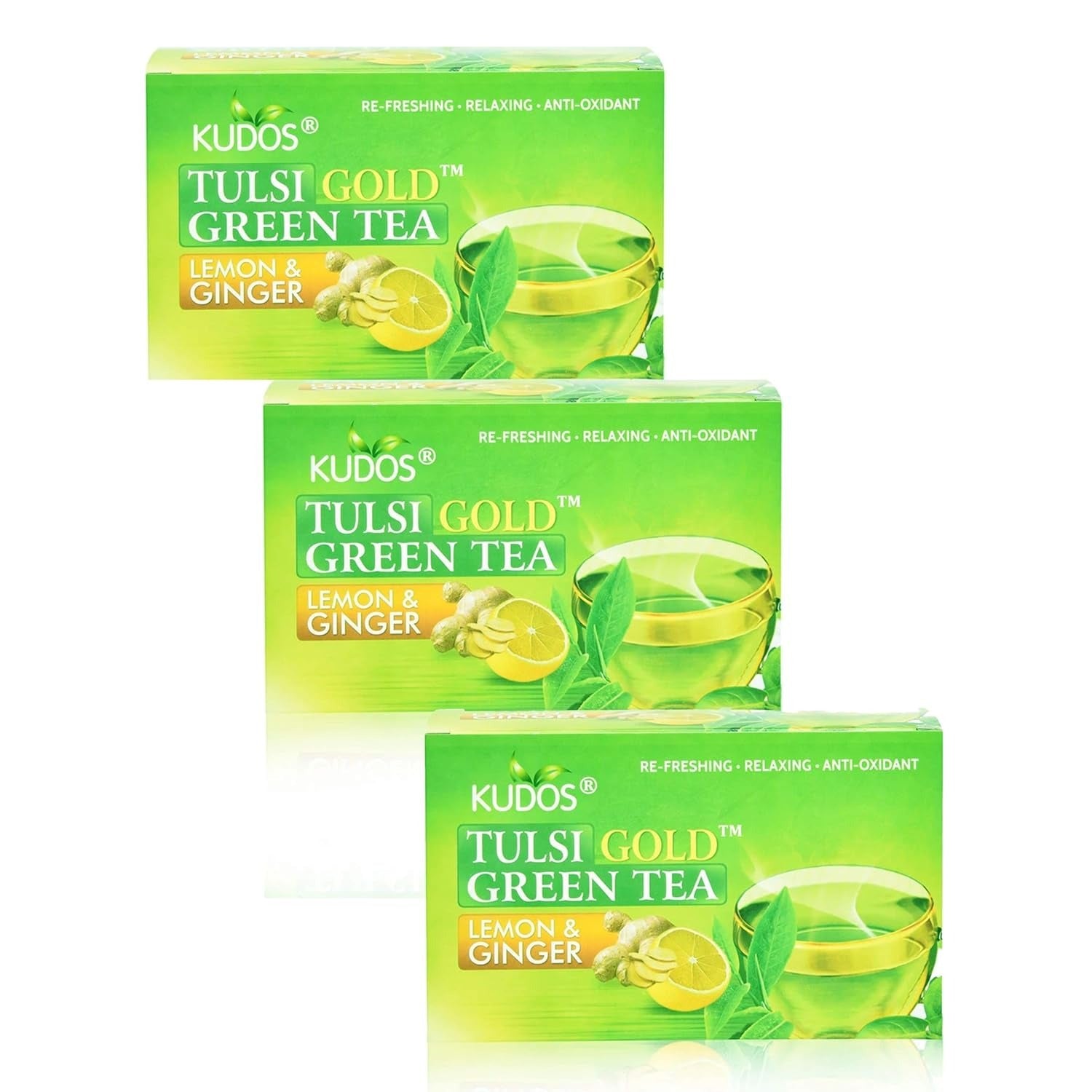 Kudos Tulsi Gold Green Tea - Lemon & Ginger - 50gm - (Pack of 3)