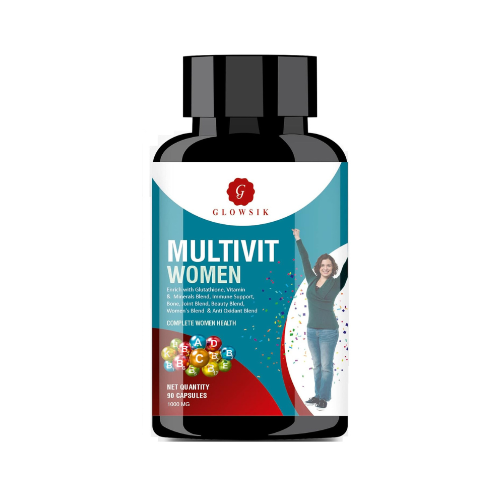 Glowsik Multivitamin for Women With Biotin, Vitamin D, Calcium, Folic Acid, Zinc, Iron, Vitamin B12 - 90 Veg Caps