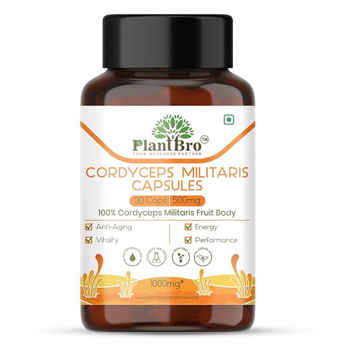 PlantBro Cordyceps Militaris Capsules 500 Mg - 30 Capsules | Raw Dried Mushroom Capsules for Men and Women