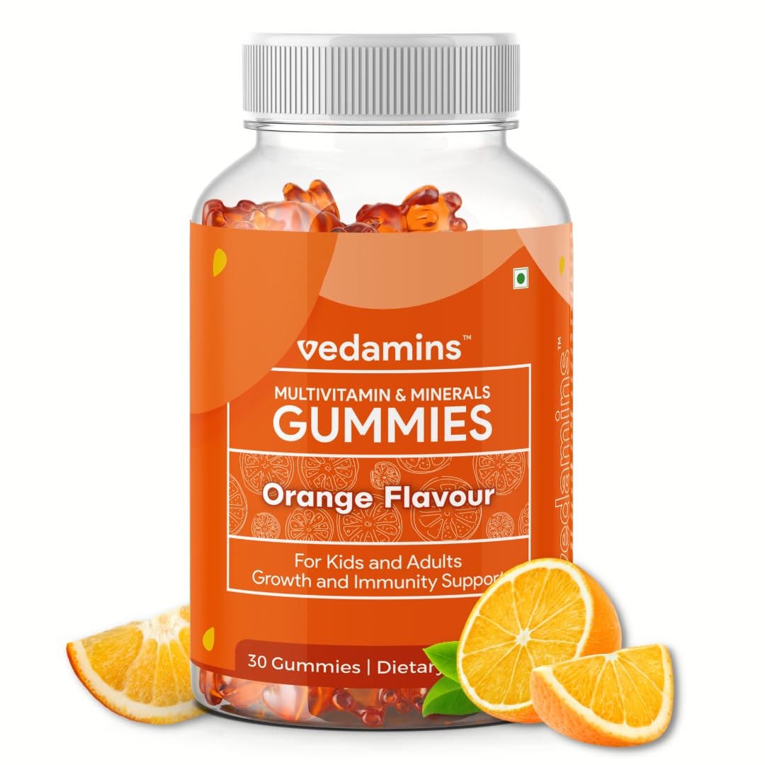 Vedamins Multivitamin Gummies for Men Women & Kids I Immunity, Increased Energy & Metabolism – 30 Gummies | Orange Flavour