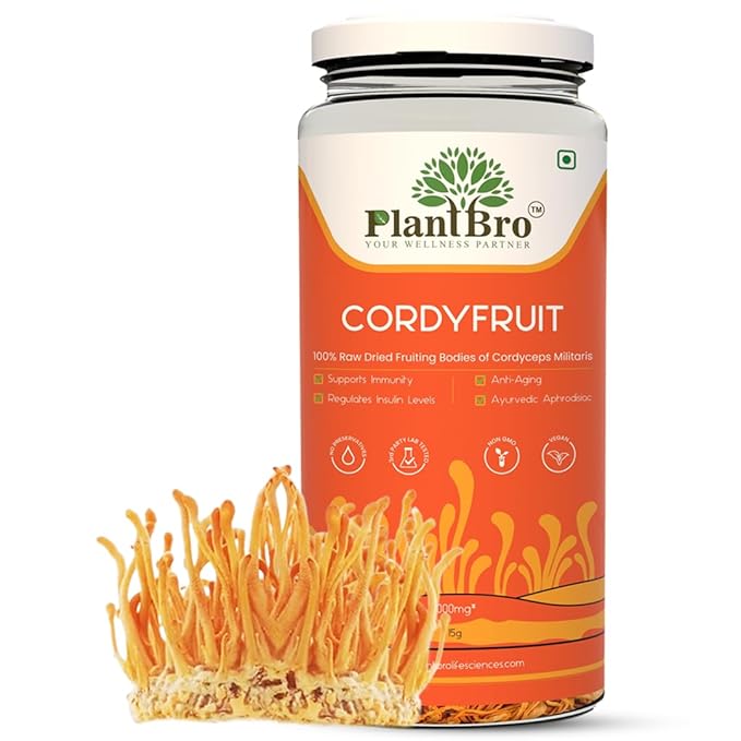 PlantBro Cordyfruit, 100% Raw Cordyceps Militaris Mushroom Fruit Bodies for Energy, Endurance and Immunity - 15 Gms