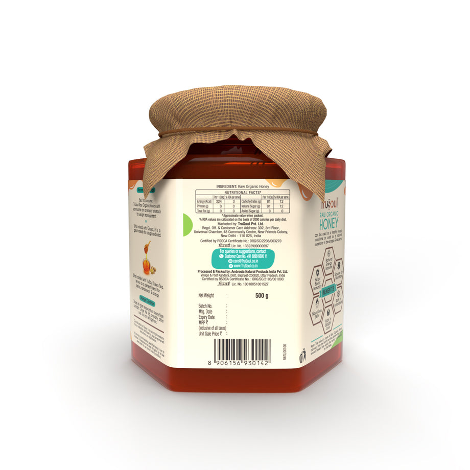 Trusoul Raw Organic Honey Glass Bottle - 500 gms