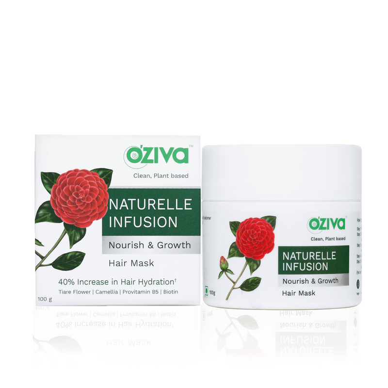 • The OZiva Naturelle Infusion Nourish & Growth Hair Mask is a blend of 11 highly effective plant-based ingredients, especially beneficial for dry, frizzy hair and improves the health of your scalp while boosting the strength of your hair by moisturizing and nourishing them with upto 40%✝ increase in hair hydration and reduces the frizz.