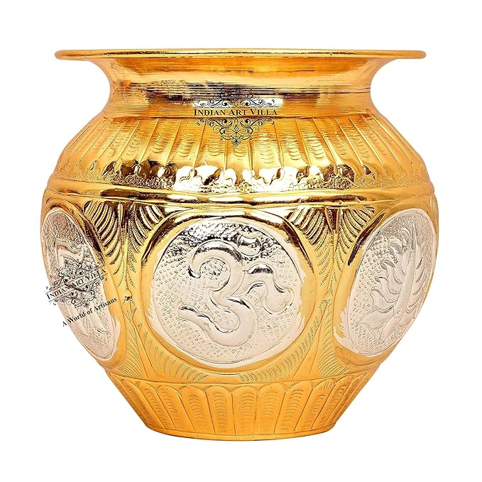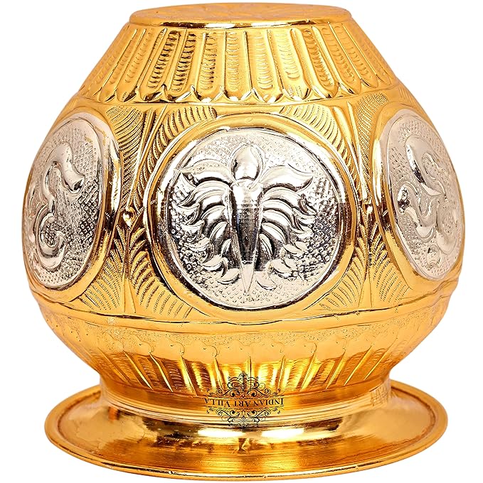 Indian Art Villa Pure Copper Pooja Kalash Gold Finish Design - 300 gms
