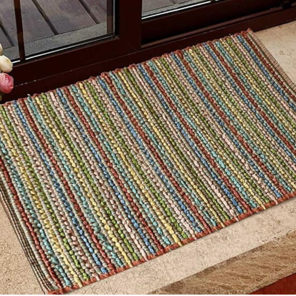 The Home Talk Handmade Stripes Cotton Rug Water Absorbent for Bathroom Entrance Door