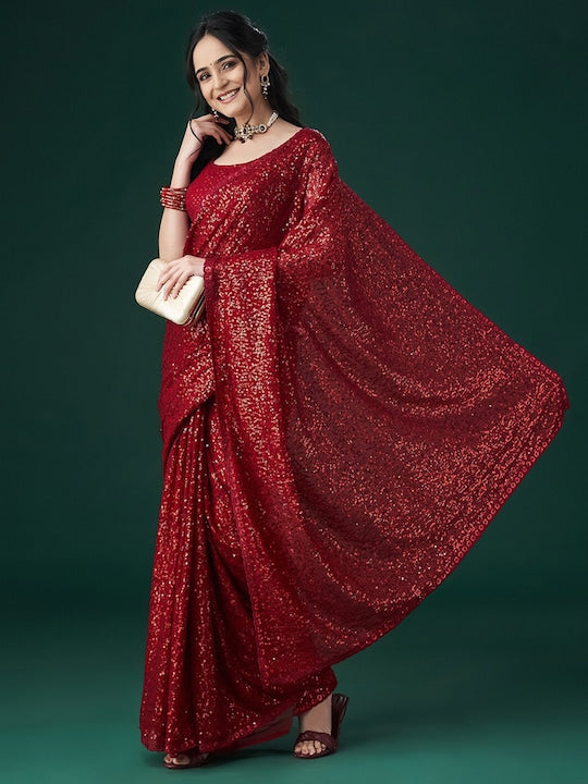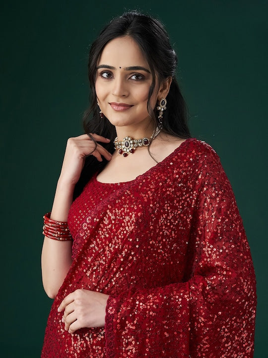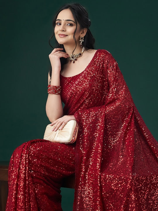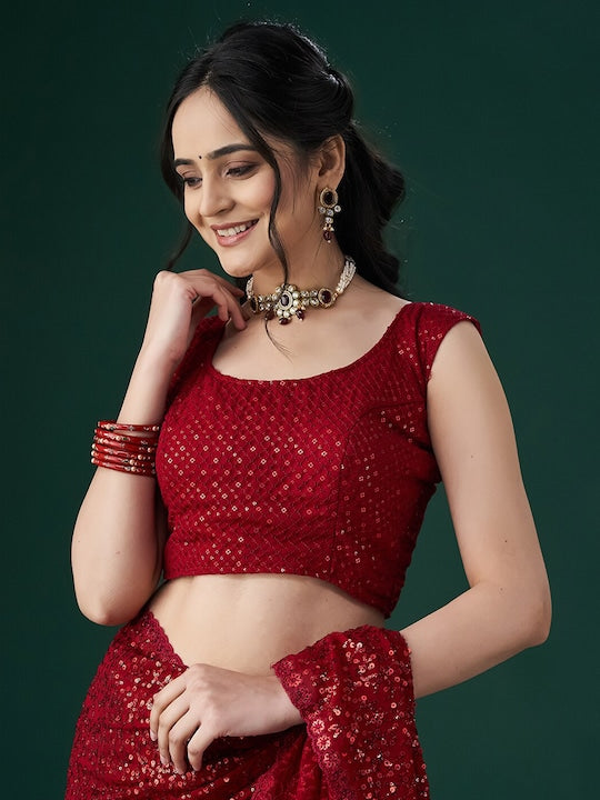 - The blouse worn by the model might be for modelling purpose only. Check the image of the blouse piece to understand how the actual blouse piece looks like.
