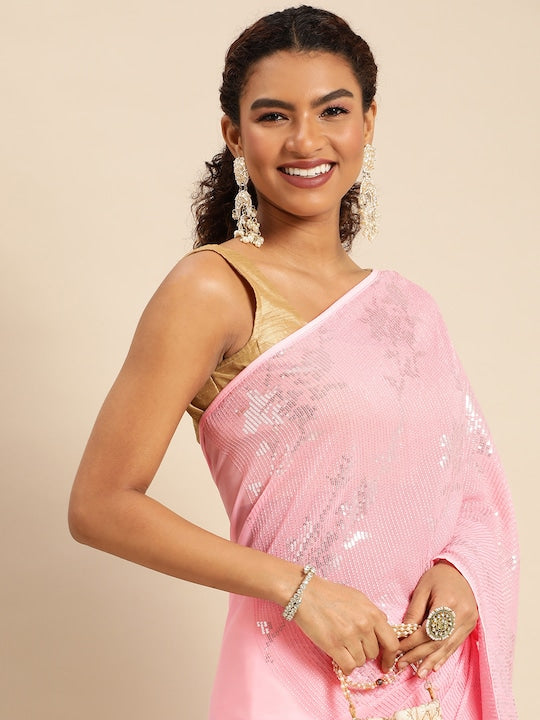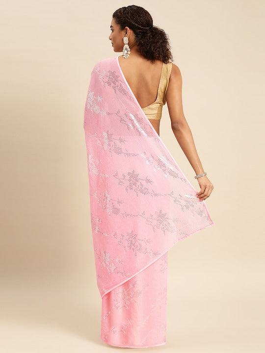 Kasee Embellished Striped Sequinned Pure Georgette Saree