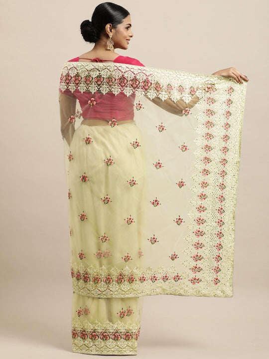 • The blouse worn by the model might be for modelling purpose only. Check the image of the blouse piece to understand how the actual blouse piece looks like.