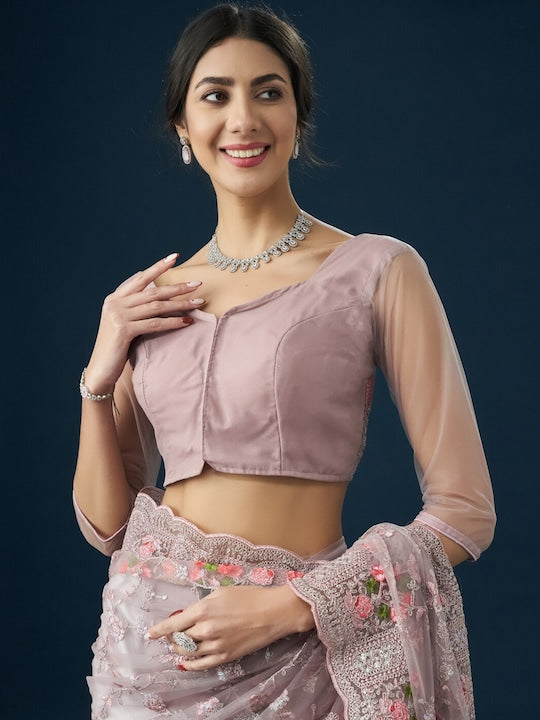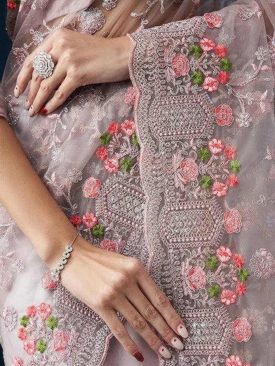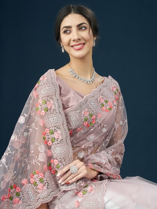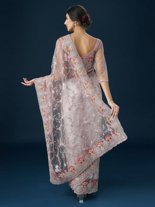 Kasee Floral Embroidered Net Saree