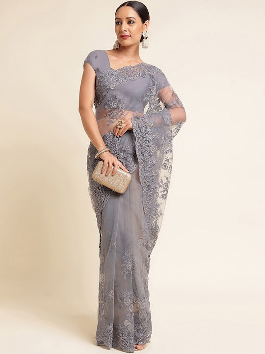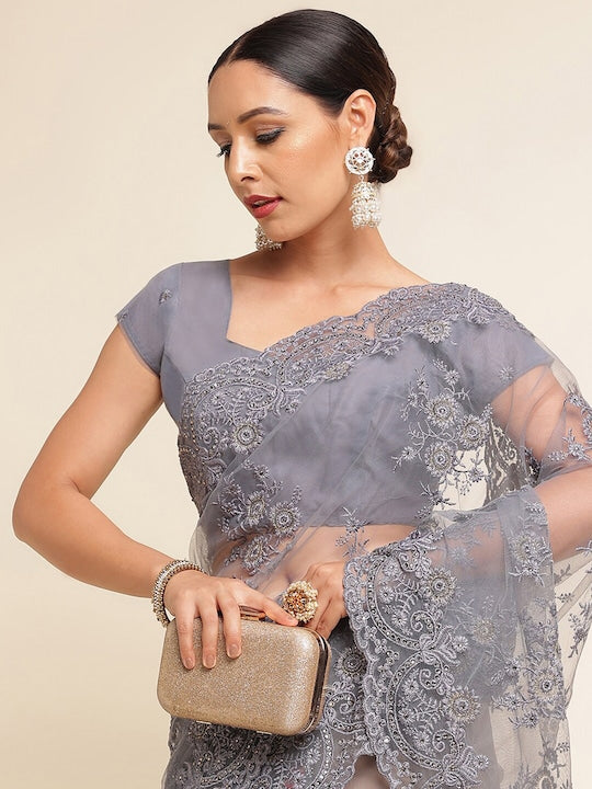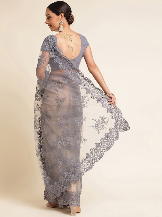 Kasee Floral Embroidered Net Saree