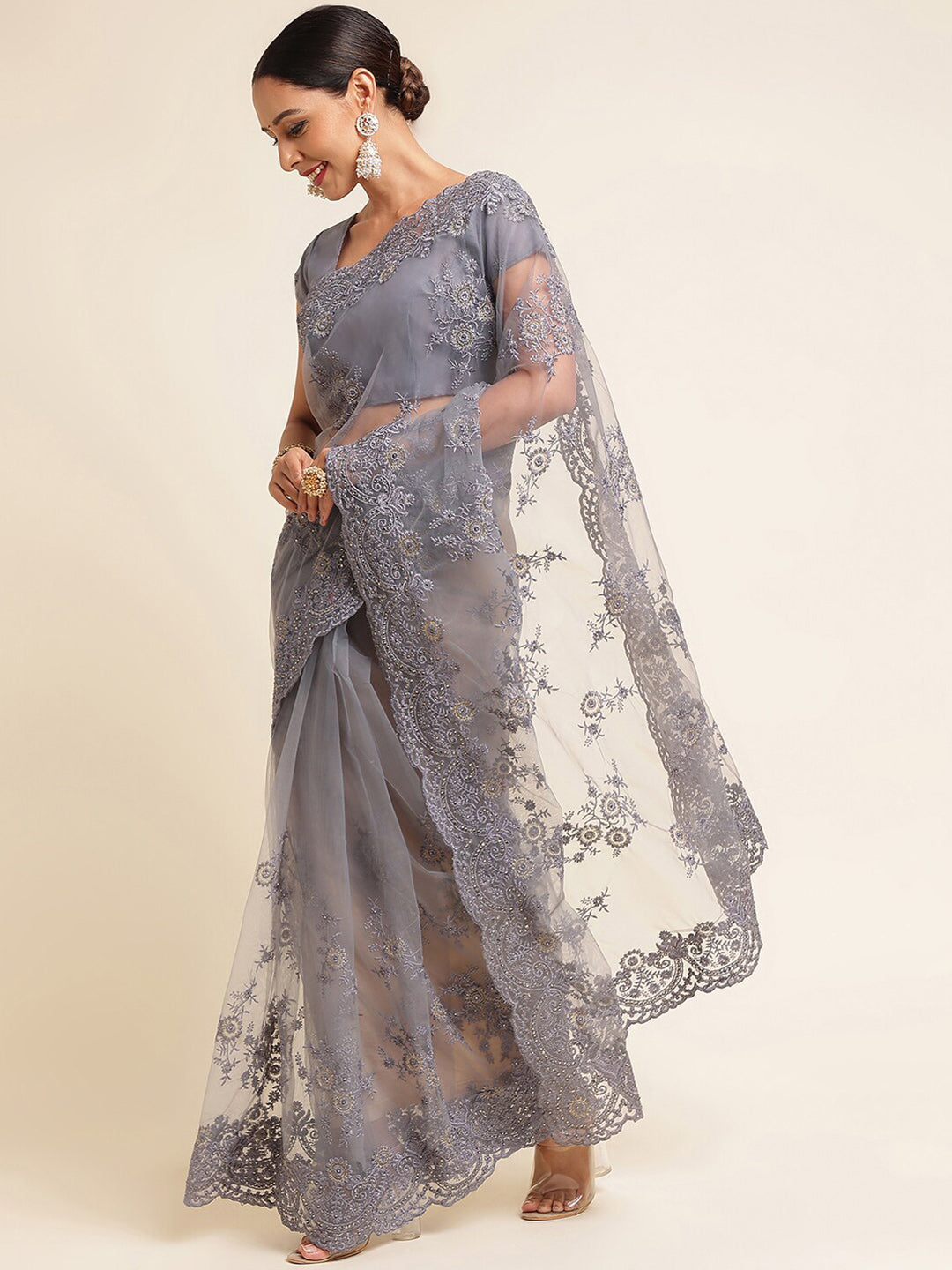 - Grey saree