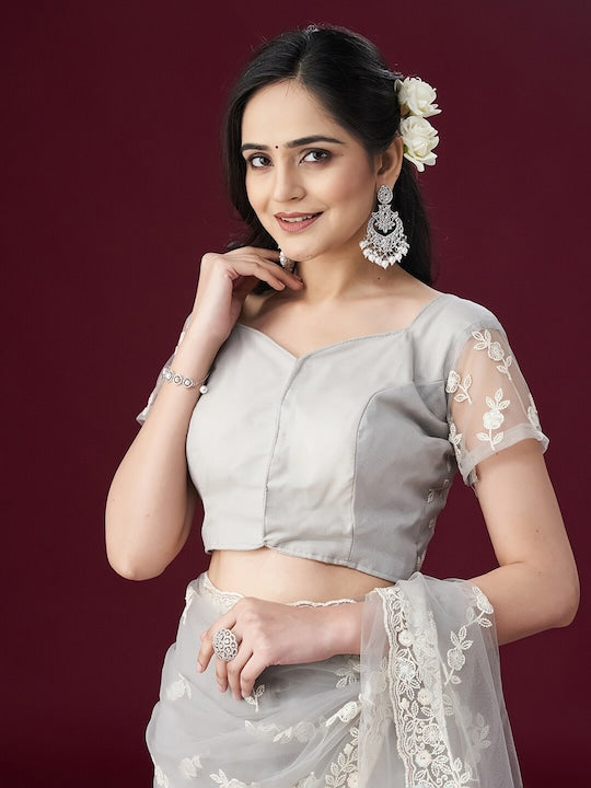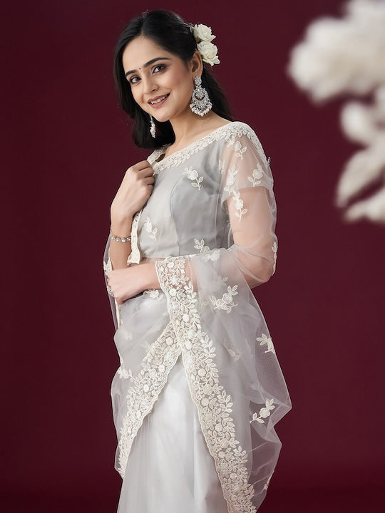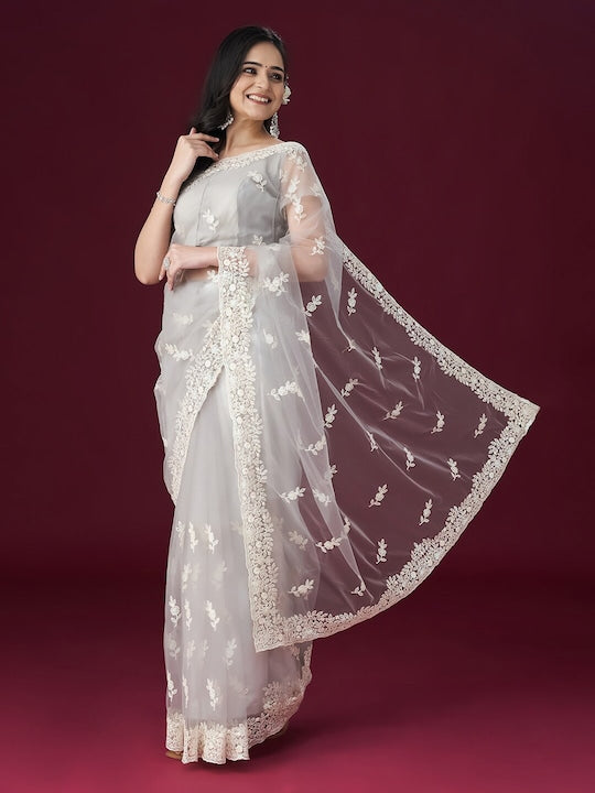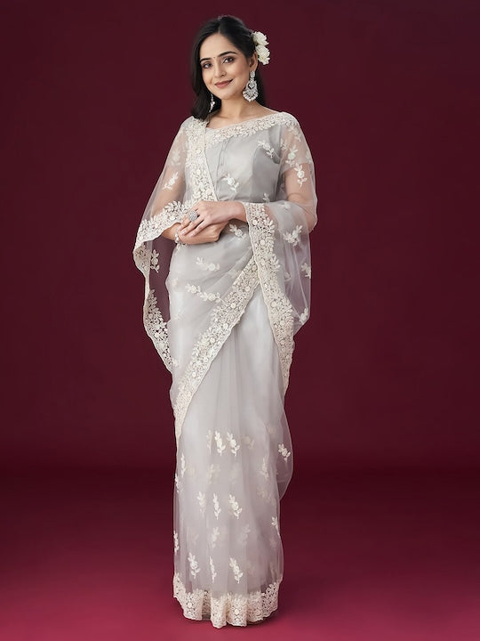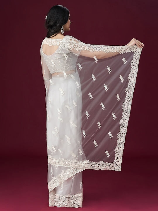 Kasee Floral Embroidered Net Saree