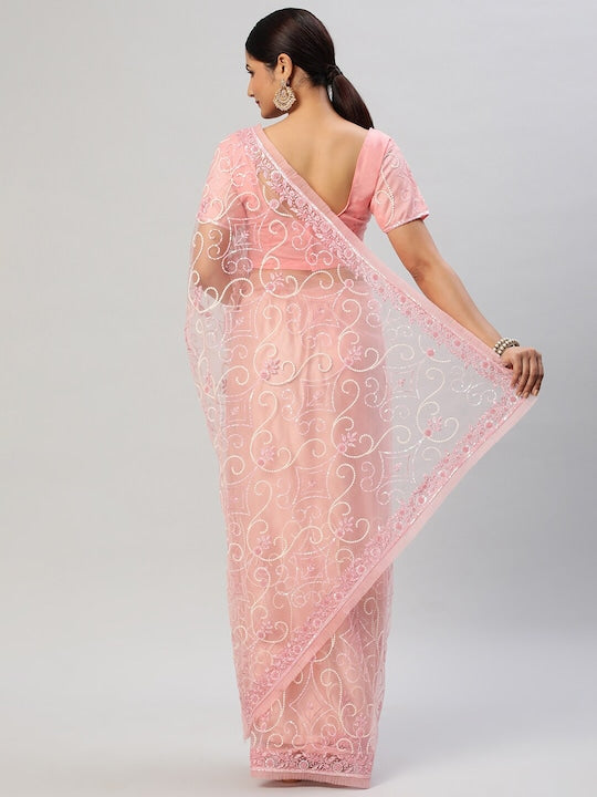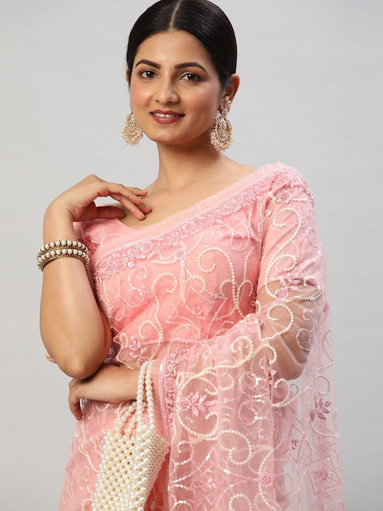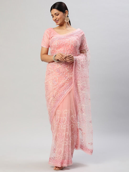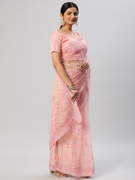 Kasee Floral Embroidered Sequinned Net Saree