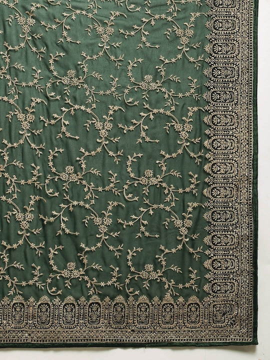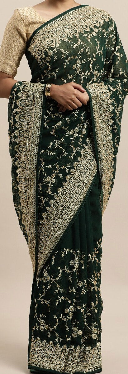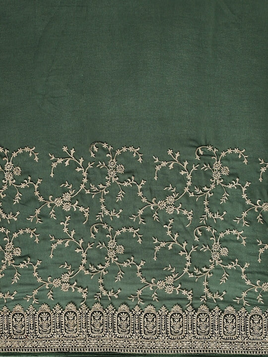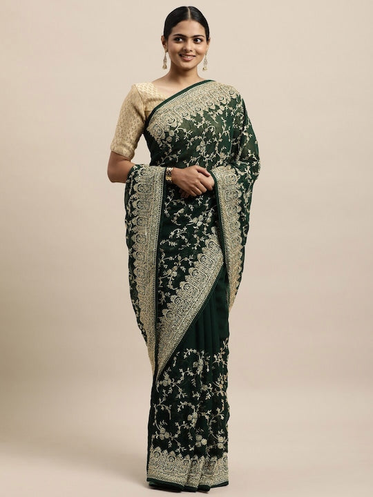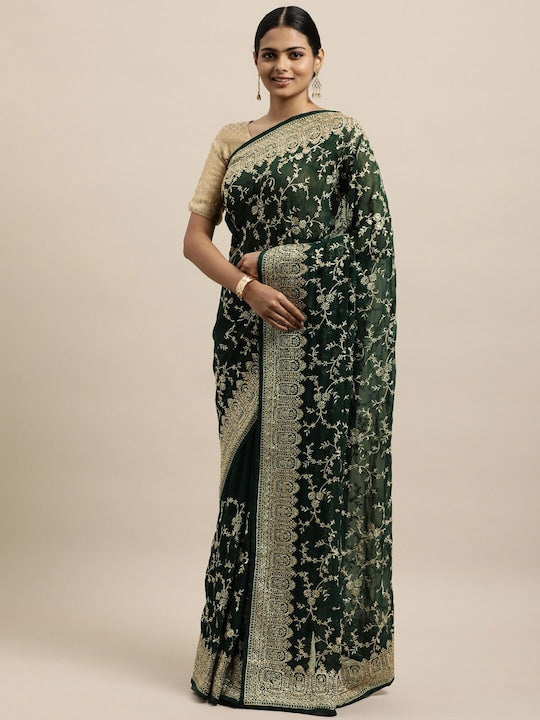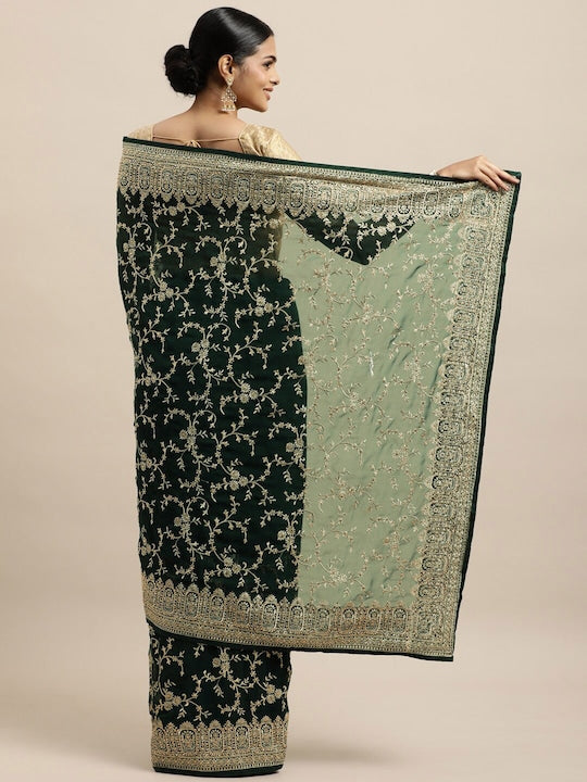 Kasee Green & Gold-Toned Floral Embroidered Pure Georgette Saree