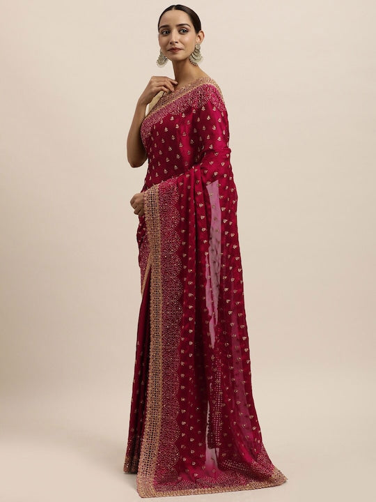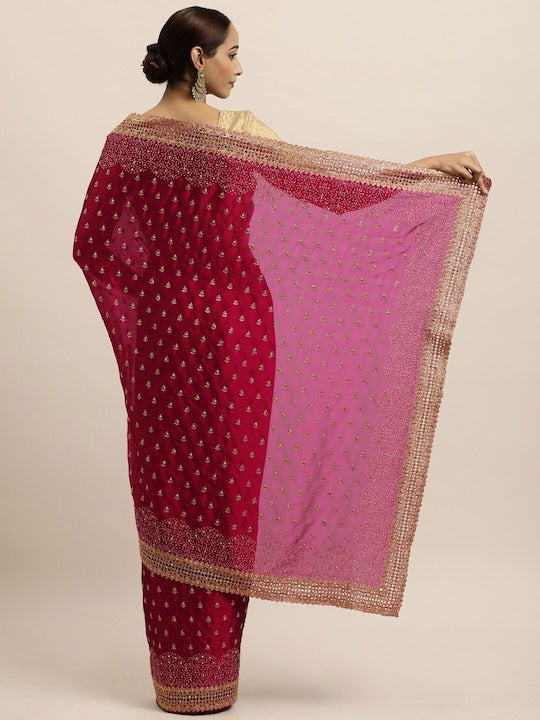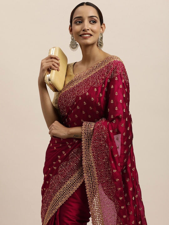 Kasee Red & Gold-Toned Floral Embroidered Art Silk Saree