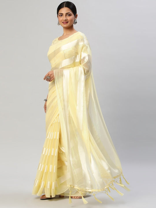 - The blouse worn by the model might be for modelling purpose only. Check the image of the blouse piece to understand how the actual blouse piece looks like.