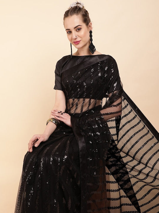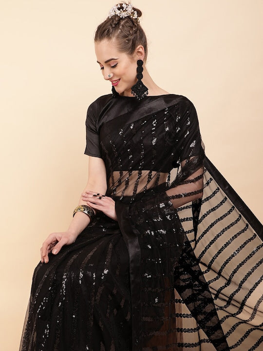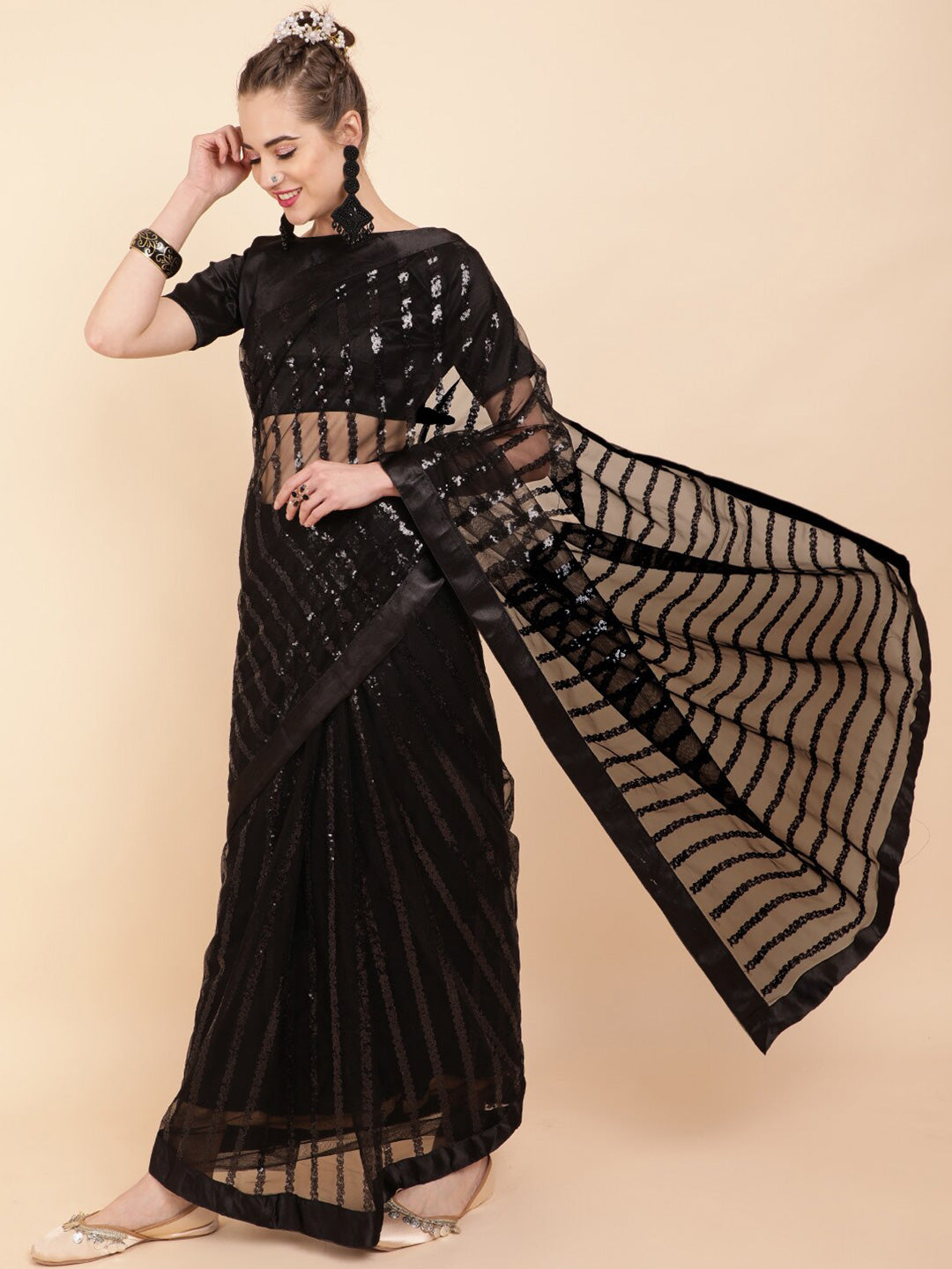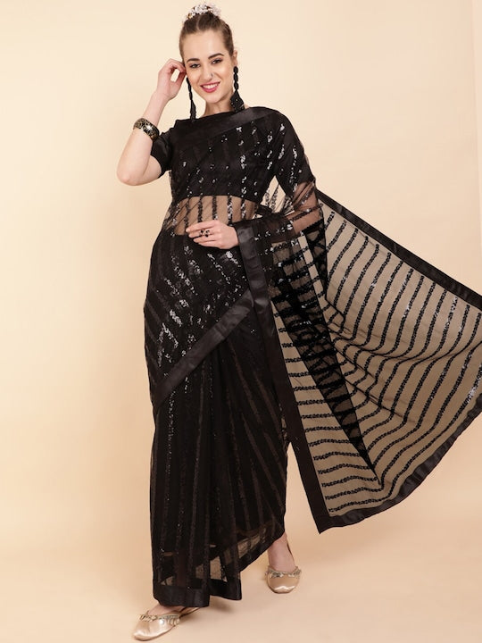 • Disclaimer: The saree comes with an unstitched blouse piece; the blouse worn by the model could be for modeling purposes only. Please refer to the image of the actual blouse piece.