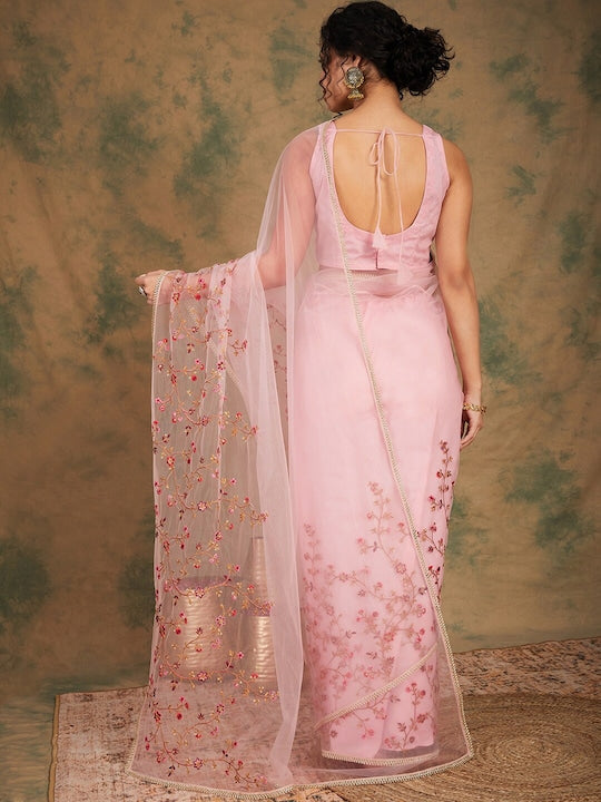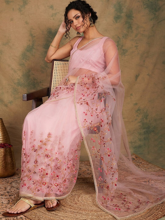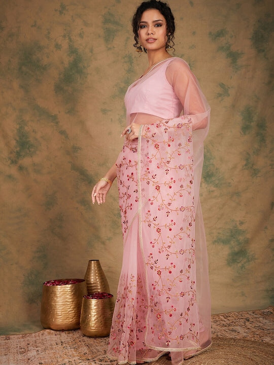 Sangria Embroidered Detailed Net Saree
