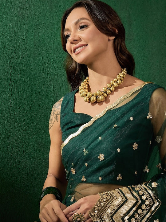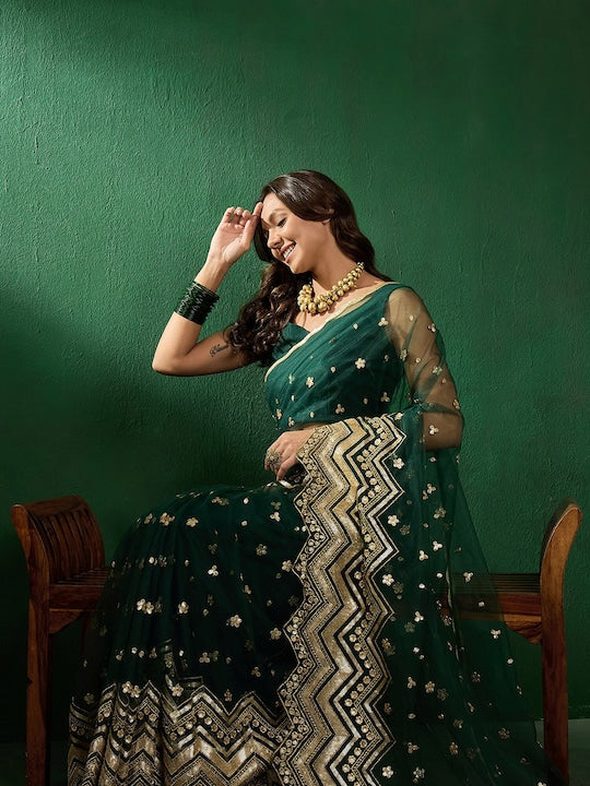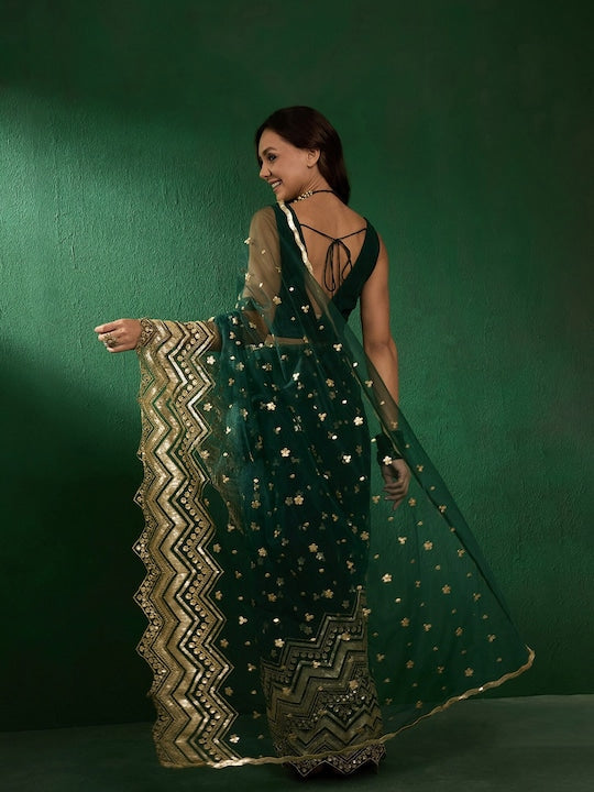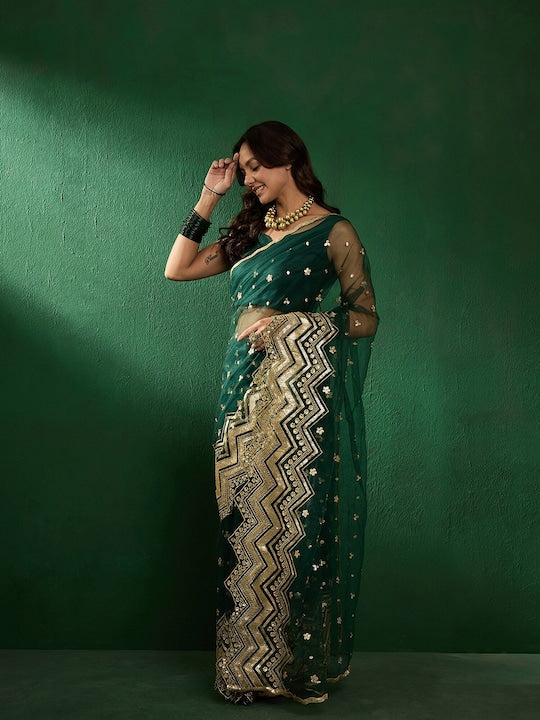 Sangria Ethnic Motifs Embroidered Zari Sequined Saree