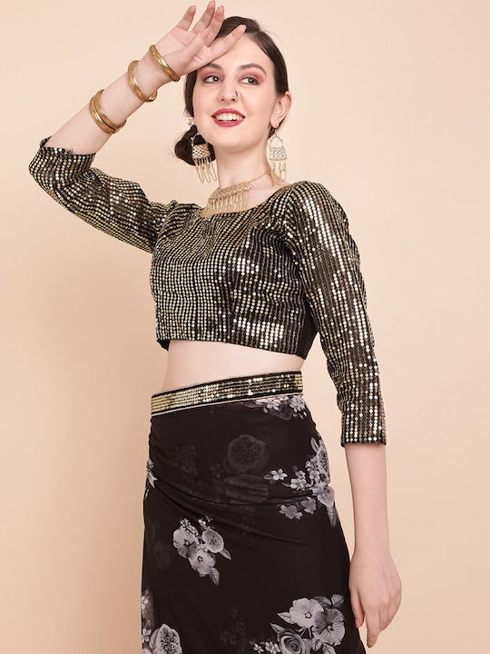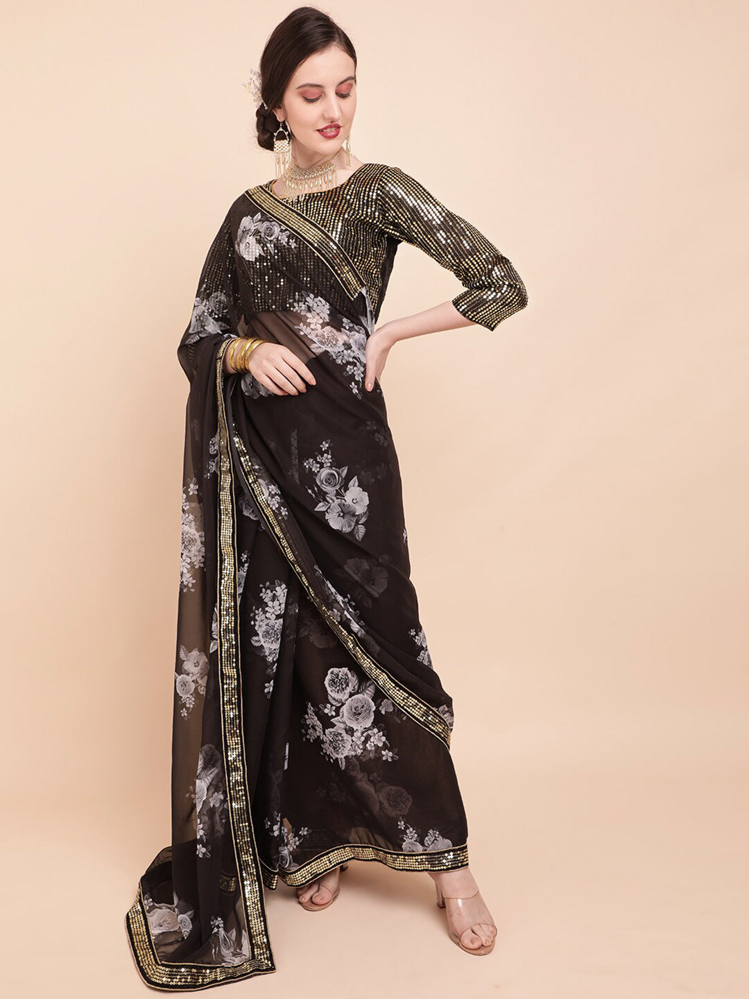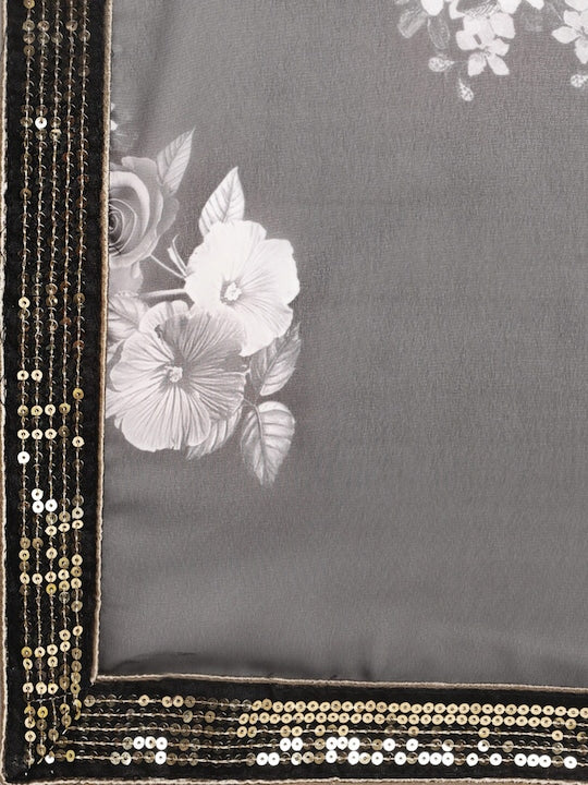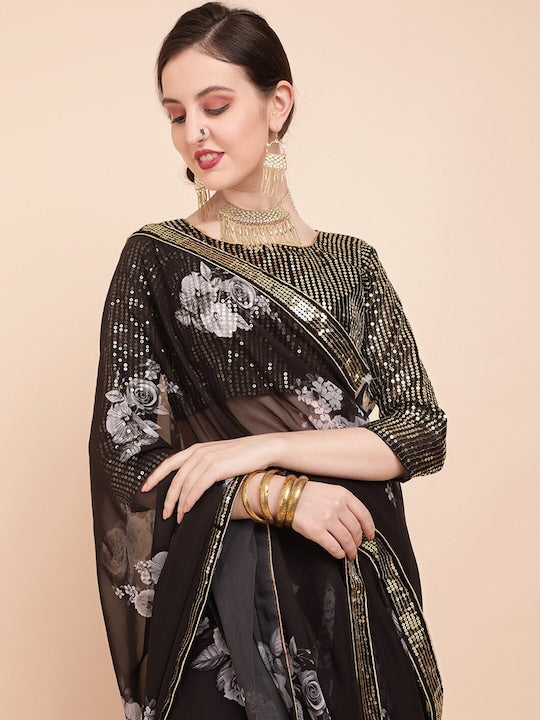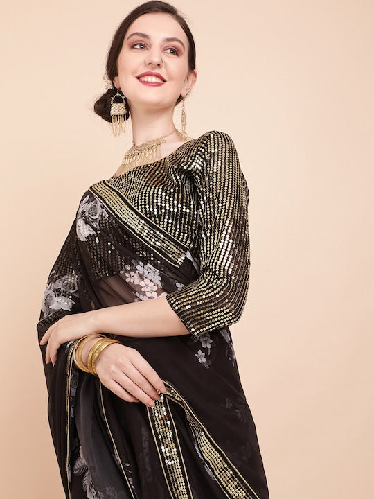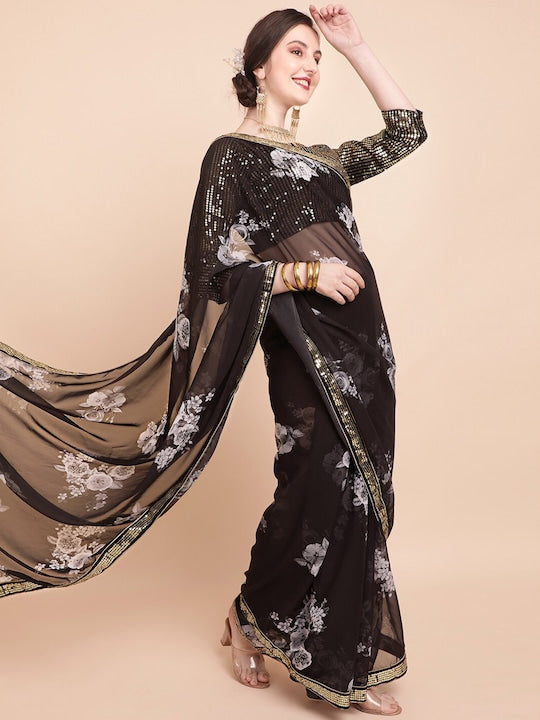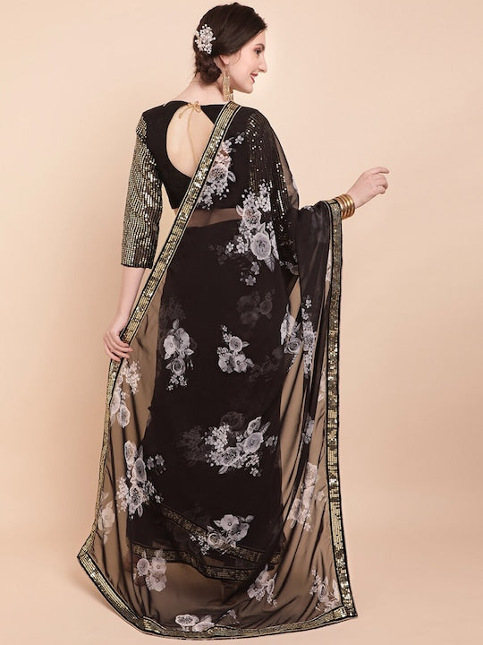 Sangria Floral Sequinned Pure Georgette Saree