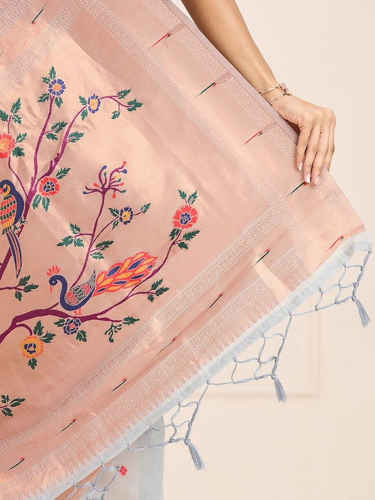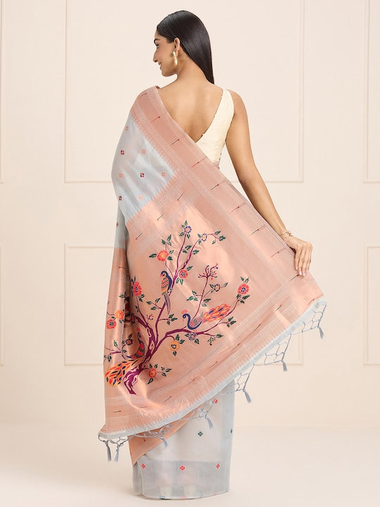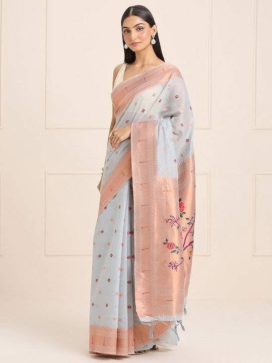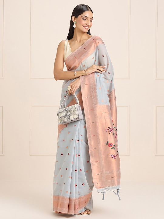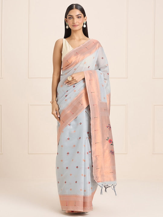 Sangria Grey Ethnic Motifs Embroidered Woven Design Saree