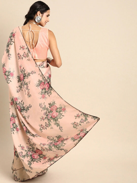 • Disclaimer: The saree comes with an unstitched blouse piece. The blouse worn by the model might be for modeling purposes only. Check the image of the blouse piece to understand how the actual blouse piece looks like. Please note, the model is wearing a belt from the stylist's collection. The product doesn't come with the belt.
